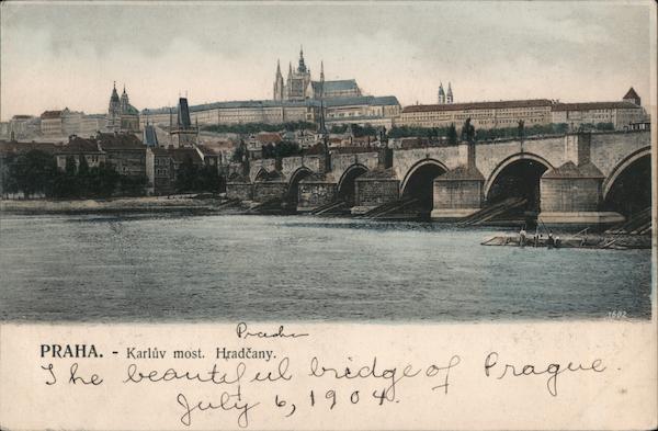 Front: 1602 Preehe PRAHA. - Karlův most. Hradčany. he beauteful bridgeof Praque 19040. July b, EEI Back: so Dopisnice.
