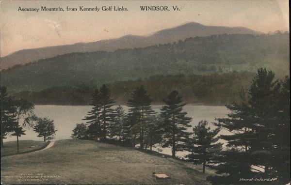 Front: Ascutney Mountain, from Kennedy Golf Links. WINDSOR, Vt. PHBL. BY ROCKW oOD'S PHARMACY WINDSOR, VT. Hand-Colored Back: lc. 2c. MESSAGE ON THIS SIDE. THE ALBERTYPE CO. BROOKLYN, N..