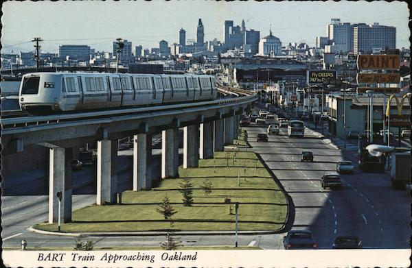 BART TRAIN APPROACHING OAKLAND, CALIF.
