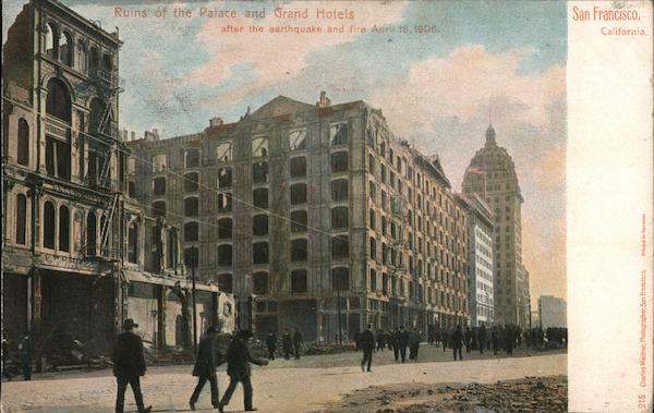 Front: Ruins óf the Palace and Grand Hotels San Francisco, after the earthquake and fire April 18, 1906. California. 215 Charles Weidner, Photographer,San Francisco. Back: WA en here PO'ST BEARD. I 17-PM ANKLIN 1790 RT 1706 seit Bate theet مرمت