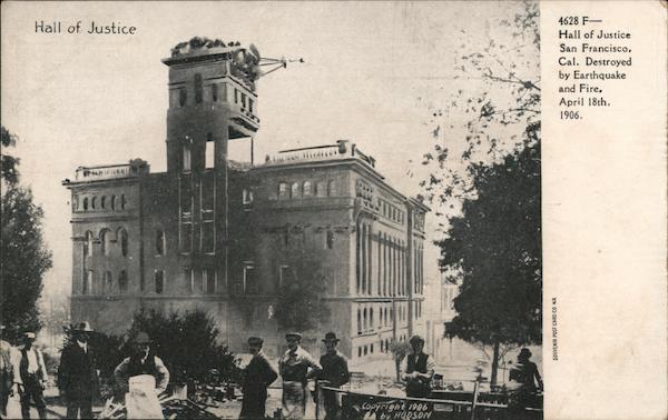 Front: 4628 F- Hall of Justice Hall of Justice San Francisco, Cal. Destroyed by Earthquake and Fire, April 18th, 1906. Copyright 1906 S by HODSON Back: 350 mother