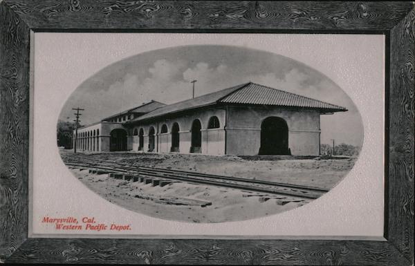 Front: Marysville, Cal. Western Pacific Depot. Back: 12 POST CARE 1 C 20 11 27160% GLOSSO SI -OSSO SERIES Message No. 1279. Pub. by Pacific Novelty Co. of San Francisco, Cal. Made in Germany.