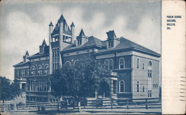 Front: PUBLIC SCHOOL BUILDING, VALLEJO, CAL. Back: SOLANO CO POST C MAY 177 7-AM! 7909 TG cara ha clara, fron Al to. GESTALES Goc B 28 Grant sto