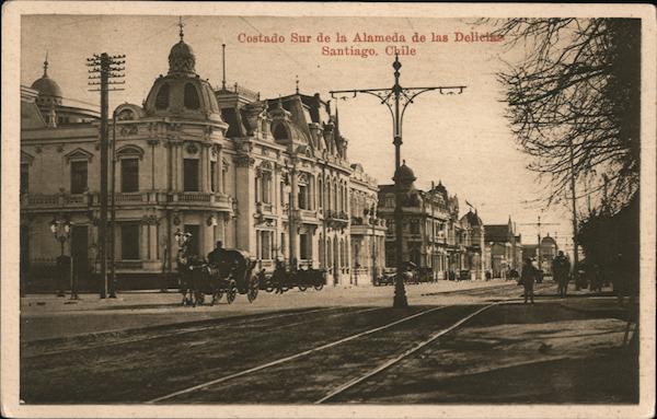 Front: Costado Sur de la Alameda de las Deliela Santiago. Chile 70 1904G1O Back: Carte postale. -- Union postale universelle CHILE