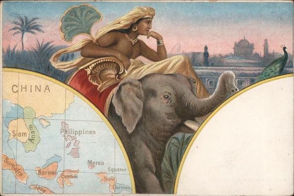 Front: CHINA Philippines Siam Morea Sumafra Guinea Equator Воглеб Celebes Java Back: 350 AUTHORIZED BY ACT OF CONGRESS OF MAY 19.1898.