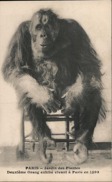 Front: Jardin des Plantes Deuxième Orang exhibé vivant à Paris en 1893 Back: Correspondanee I, P. M. - Paris