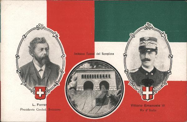 Front: Imbocco Tunne del Sempione L. Forrer Vittorio Emanuele II Presidente Confed. Svizzera Re d' Italia Back: Carte postale. ay Postkarte. ale ogle A. G. M.