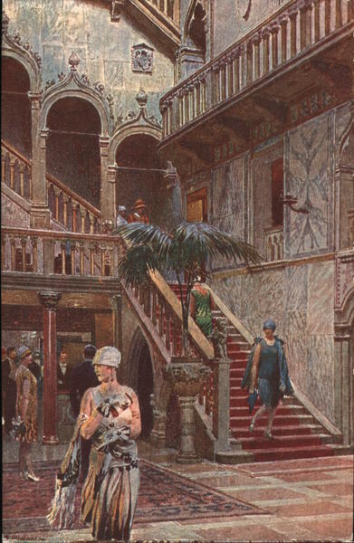 VENEZIA Hôtel Royal Danieli: Lo scalone. (Da un acquarello di Fortunino Matania). SOCIETÀ ANONIMA STAB. ARTI GRAFICHE ALFIERI & LACROIX MILANO