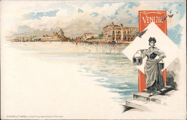 Front: VENEZIA RICHTER & C NAPOLI, Lit. Edit. Proprietà-Artistica Riservata. Back: NB. Sul lato anteriore della presente si scrive soltanto l'indirizzo. (CARTE POSTALE D'ITALIE). CARTOLINA POSTALE ITALIANA