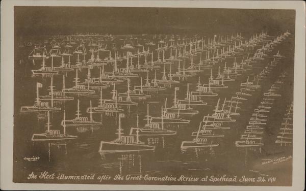 חח Fann Ton, 212. dagrigat Fne Heet iluminated afler Yhe Great Goronation Review al Sputhead Iune I4 191 Sahn son