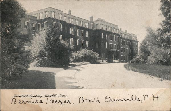 Front: Bradford Academy - Hlaverhill, Mass. Bernice freezer, Box16, Danville, h. H. Back: HI! NITEI VIVES INAIN 1290 120 FRANET WT.C APR 12 D 1 PM B. 9. Gates, 55.HECY 1906 NEW! 59 Bowers St. heutonville, Hars,