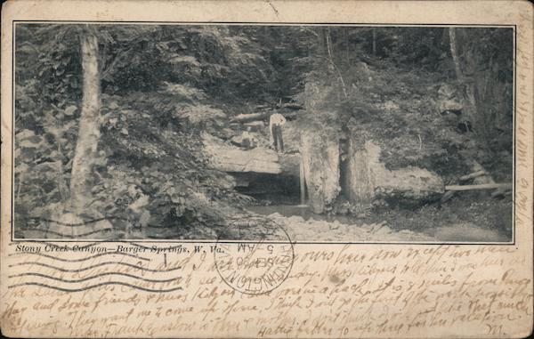 Front: / Mall им Stony Creek Canyon—Barger Springs, W. Va. W G IN A NO23317 ¿ met om eudi v parlame ut me the coue is heure. Tautas 72. Back: UNIVVEDSTV IN 1790 126 FRANK ao Pinet CIN.O Nonpareil Ptg. & Pub. Co., Cin., ().
