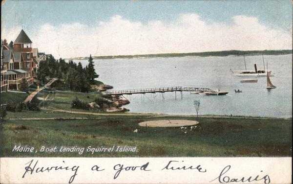 Front: Maine, Boat Landing Squirrel Island. Having a good time Cancio Back: VVV 2 Db 4 PM 1907 NIIN 1790 1706 ME. THE HUGH C.LEIGHTON CO., MANUFACTURERS, PORTLAND, ME., U.S.A. Mu. G. Eduards. & Beckwith biele Somerville
