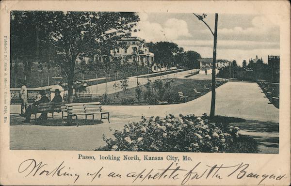 Front: TORE Published for Niles & Moser, Kansas City, Mo. Paseo, looking North, Kansas City, Mo. Working who au appetite for the Banquets Back: VVVEDS IAI US 1905 ANKLIN 1790 1706 FRANK DNE Qo6 W LOA Baen Freuucatif