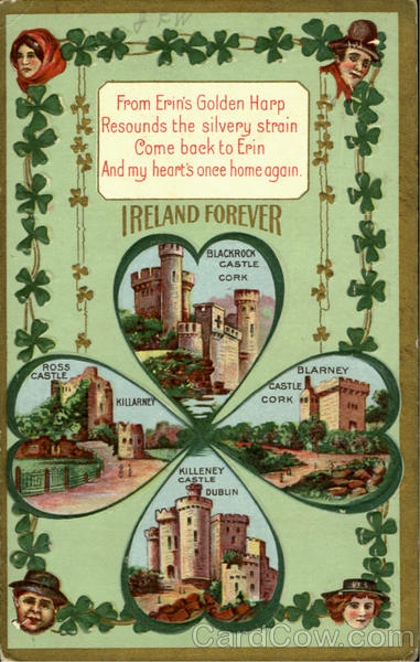 From Erin's Golden Harp Resounds the silvery strain Come back to Erin And my heart's once home again. Ireland forever. Blackrock Castle Cork. Rose Castle Killarney. Blarney Castle Cork. Killeney Castle Dublin