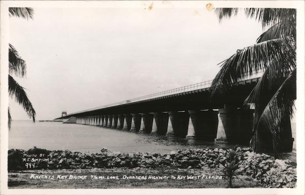 Front: Рното ВY RESIMPSON 999. ANIGKTS KEY BRIDSE T% MI.LONG OvERSEAS HIGHWar To KEY WEST FLORIDA Back: February 1939