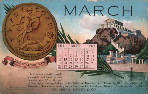 Divinities. Romulus according to tradition was the founder of Rome. (See September card.).