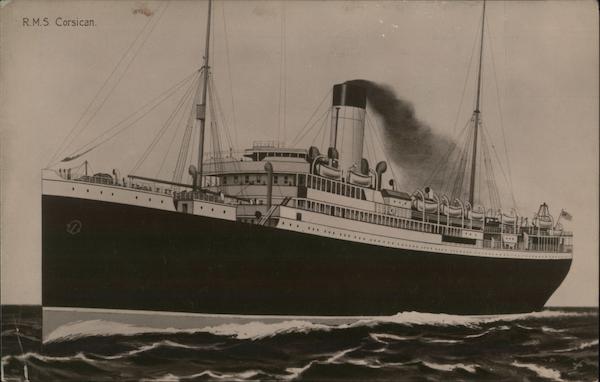 Front: R.M.S. Corsican. ........ Back: Photo printed in Great Britain. For Communication. Published by C. W. Hunt & Co., Liverpool