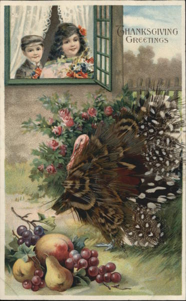 Front: GHANKSGIVING GREETINGS Back: Orith any little girl and gour little boy ban contruted we could be NEAL FOX TOEVS! 361
