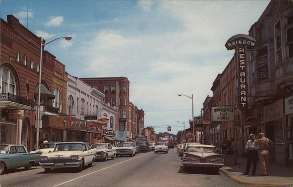 Front: RAINBOW AGENCY TRE ARY AUTO Florsheim shoes PO MONOMOAHELA M) POWER RINGOT ADRIAN DANK IEFTAURANT Back: BUSINESS SECTION Buckhannon, W. Va. Color Photography by C. H. Ruth 38010 Pub. by Valley News Agency, Inc., Staunton, Va.