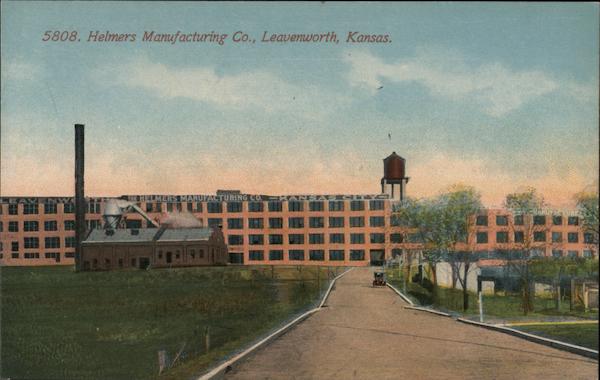 Front: 5808. Helmers Manufacturing Co., Leavenworth, Kansas. HELMERS MANUFACTURING CO. KANS RUFACTURER Back: AND CANADA, FOREIGN, Two CENTS.