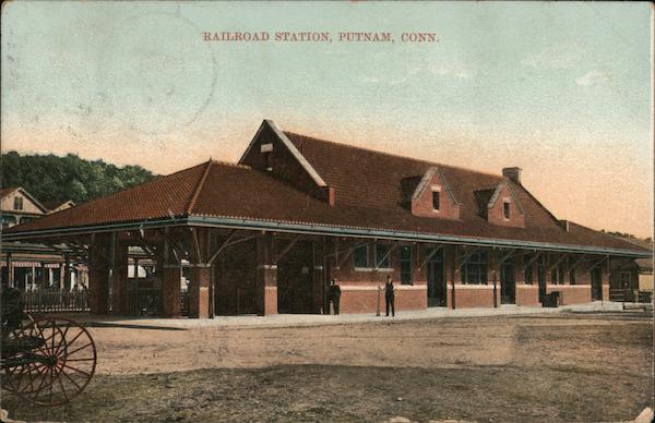 Front: RATLROAD STATION, PUTNAM, CONN. Back: cessages Punios 46 609 eigen puncao da CON frofon 2 Lorrien gennemming mm Mos Hassen Bradlong is uts stop at Kew arived 3.26. 3min here we are in Dear Friends Short Beach bonn SL co E 7350