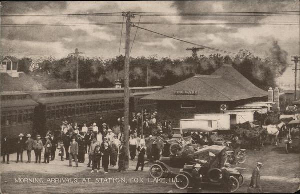 MORNING ARRIVALS AT STATION, FOX LAKE, ILL.