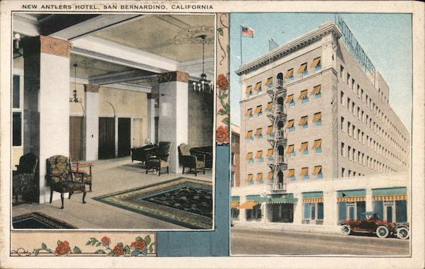 Front: NEW ANTLERS HOTEL, SAN BERNARDINO, CALIFORNIA 1. 75 77 Back: 123616 MONTGOMERY, RIVERSIDE, CALIF. ODKETTE BY B. R PUB