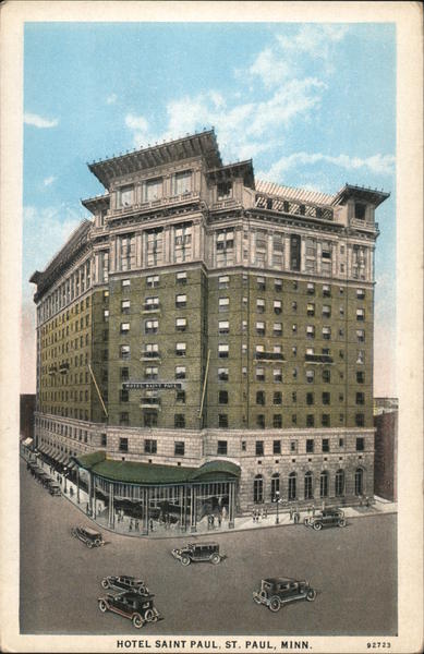 Front: NOTEL SAINT PAUL HOTEL SAINT PAUL, ST. PAUL, MINN. 92723 Back: 3 p H. A. OLSON SPECIALTY CO., PUBLISHER. ST. PAUL.