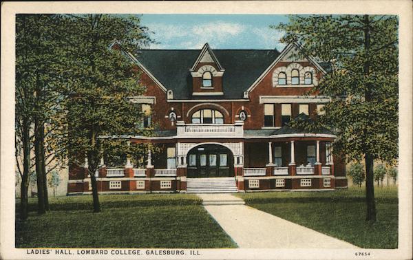 Front: LADIES' HALL, LOMBARD COLLEGE, GALESBURG, ILL. 67654 Back: PUBLISHED BY J. H. BAIRD, GALESBURG, ILL. C. T. AMERICAN ART COLORED TO