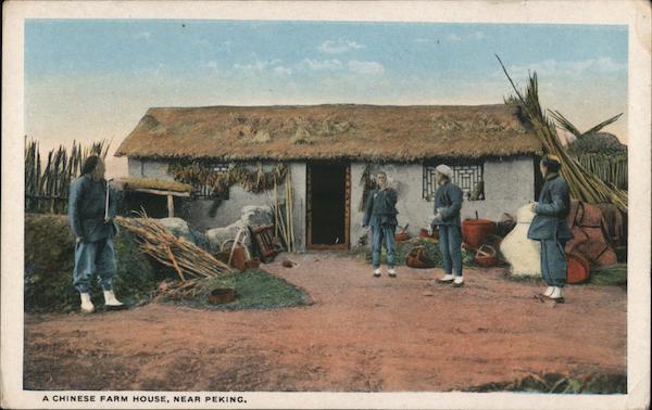 Front: A CHINESE FARM H OUSE, NEAR PEKING. Back: R-80389 PUBLISHED BY CAMERA CRAFT CO., PEKING, CHINA. C.T. AMERICAN ART- uen