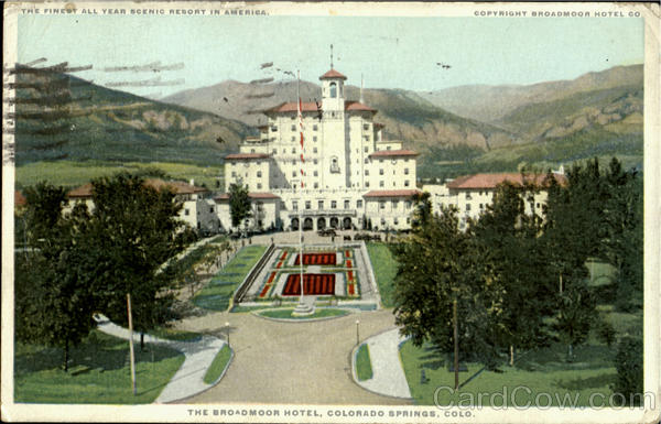 The finest all year scenic resort in America. The Broadmoor combines a varied outdoor life and superb climate with a refined and delightful social atmosphere. Unequaled cuisine and service. Fireproof. Open all the year