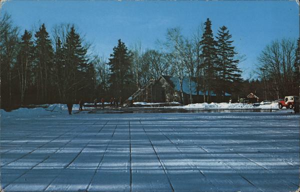 | The annual harvesting of natural ice for sale purposes has survived for approximately 140 years on this Thompson family pond, despite the advent of artificial refrigeration. Principal present-day customers are local fishermen and lobster shippers. |