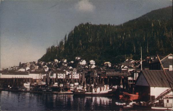 Alaska C297 KETCHIKAN HARBOR, ALASKA Ketchikan's harbor is crowded with the masts of hundreds of fishing ves- sels that make their home port here. COLOR CARD KODACHROME REPRODUCTION BY MIKE ROBERTS STUDIOS • BERKELEY 4, CALIFORNIA