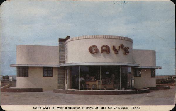 GAY'S CAFE (at West intersection of Hwys. 287 and 83) CHILDRESS, TEXAS