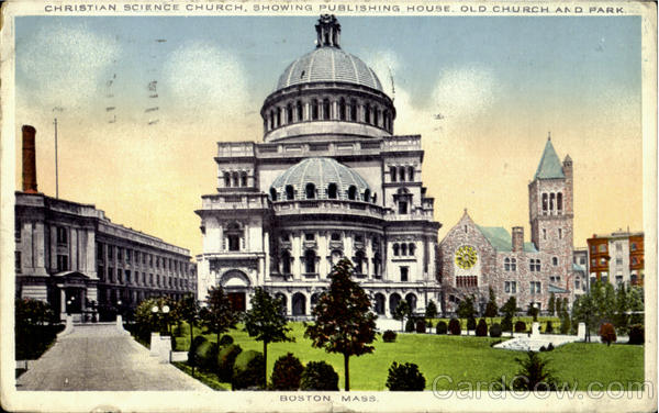 CHRISTIAN SCIENCE CHURCH, SHOWING PUBLISHING HOUSE. OLD CHURCH AND PARK.
