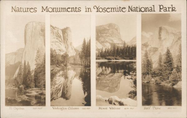 Front: Natures Moruments in Yosemite National Park El Capitan Washington Column s92 FEET Mount Watkins Half Dome 564 FEET 8235 FEET 8852 FEET Back: EA ZO NO NO
