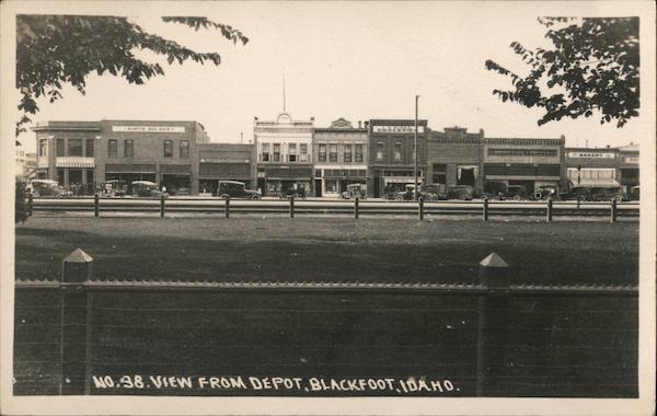 Front: GRĂ–CERIE CURTIS BUII DIKO - HBROWNHAR COMPAN on CBAKERY NES NO.38.VIEW FROM DEPOT,BLACKFOOT,IDAHO. Back: WACO REAL WESLEY ANDREWS, INC., PUBLISHERS, BAKER, OREGON
