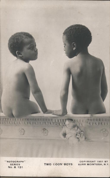 Front: "ROTOGRAPH" COPYRIGHT 1901 BY TWO COON BOYS BURR MCINTOSH, N.Y. No. A 131 Back: The Rotograph Co., N.Y. City.