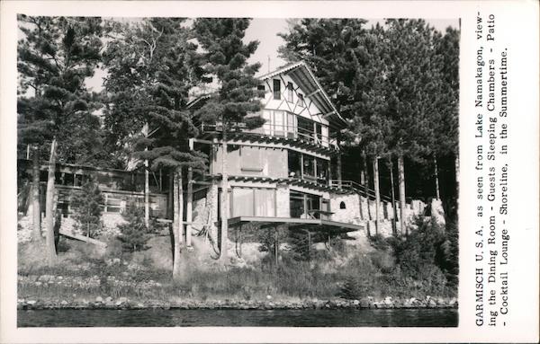 Front: GAR MISCH U. S, A. as seen from Lake Namakagon, view- ing the Dining Room Guests Sleeping Chambers - Patio Cocktail Lounge Shoreline, in the Summertime. Back: Kodak-- -Paper--