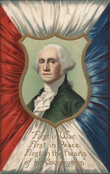 Front: "Firstlin War. Dar, First in Peace, First the hearts of his Countrymen. VAINTIMS Cllen llops Back: Art Publ. co NEW-YORK BERLIN Paul pione NO 51896.