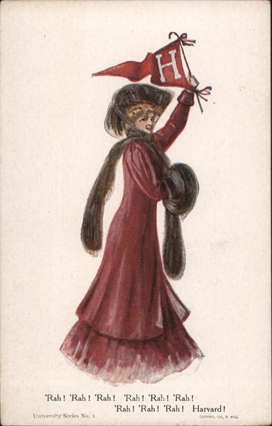 Front: 'Rah ! 'Rah ! 'Rah ! 'Rah! 'Rah! 'Rah! 'Rah ! 'Rah! 'Rah! Harvard! University Series No. I COPYR'D, 06, R. HILL Back: Place the Stamp One Cent for United States and Island Possessions, Cuba, Canada and mo Two Cents for 25