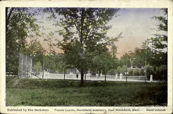 Front: Published by The Bookstore Tennis Courts, Northfield Seminary, East Northfield, Mass. Hand Colored Back: FRANK SWALLOW 1911 EXETER CARD CO. INC NH POST GARD ADDRESS