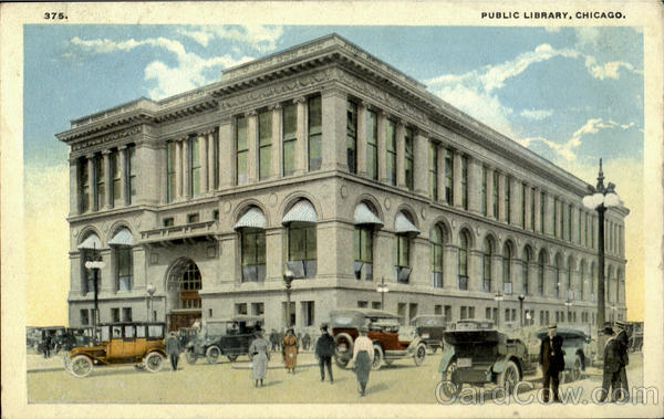| The Public Library is located on Michigan boulevard, extending from E. Washington St. to E. Randolph sty. The building contains 110,000 square feet of floor space. The library is stocked with books upon almost every subject. There are extensive collections of Art Books and Books in Foreign Languages. History, Biography and Travel. The library board maintains seventeen branch libraries and six branch reading rooms, also over a hundred delivery stations. |