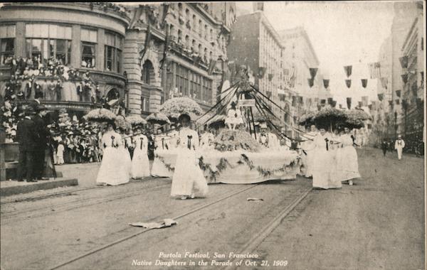 Front: Jז.ל: Portola Festival, San Francisco Native Daughters in the Parade of Oct. 21, 1909 Back: 1c 20 P4 PUBLISHED BY PACIFIC NOVELTY CO, SAN FRANCISCO 8.50