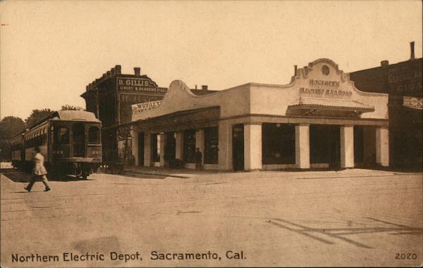 Front: D. GILLIS IVERY &8OARDING STARLE RORTHERK LETR RAILROAD GENERAL AS GIUA WRIGLEY Northern Electric Depot, Sacramento, Cal. 2020 Back: or PLACE-STAMP-HERE Ic 2c Pub. by Pacific Novelty Co. of S. F., Cal. Made in S. F.