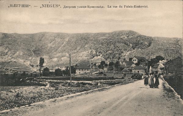 Front: "НЬЕГУШИ". -- "NIEG US". Дворска улица-Ераковии. La rue du Palais-Erakovici. 99 Back: ДОПИСНА КАРТА. CARTE POSTALE. Ed. Feitzinger, Teschen, Silesie. No. 6. Станк. Врбица.