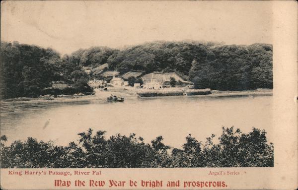 Front: King Harry's Passage, River Fal Argall's Series may the New year be bright and prosperous. Back: Write here for Inland Fostage only.