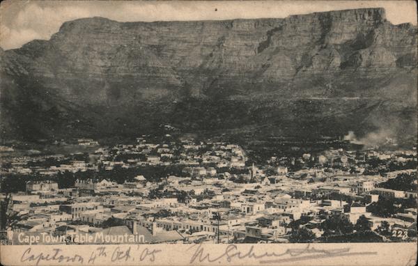 Front: GB Cape Town Table Mountain. 223 Capetoron Hth Ged.' os mocher Back: per tahun CARD. CAPE OF GOOD HOPE. written on this Side: SPE ONA Miss is von nut 7 de Milecko, Wellington England Somerset