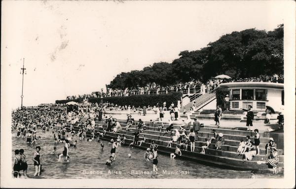 Front: Buenos Aires -- Balneacto Municipal Back: REPUBLICA ARGENTINA Communication-Correspondance Address-Adresse 101 BERNARDINO RIVADAVIA Helho Phab What A SP Tregards Paul Robinson Porterville California 4.5.4 TERRY